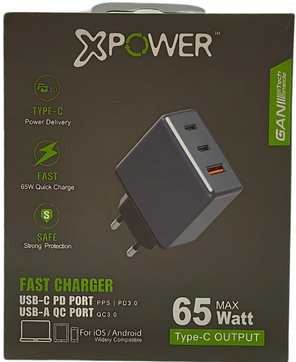 מטען אוניברסלי עוצמתי XPower 65W Type-C מספק טעינה מהירה ואמינה לכל המכשירים שלך – בבית, במשרד או בדרכים. עם טכנולוגיית טעינה חכמה והתאמה אוטומטית להספק אידיאלי, הוא מתאים למחשבים ניידים, סמארטפונים, טאבלטים ועוד. קומפקטי, יעיל ובעל עמידות גבוהה, כולל שנה אחריות לשקט נפשי מלא!